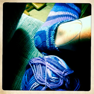 Wednesday the roads were still crap, it was sleeting, and I left work early so my aunt could work on my back. She does many various therapies, including some cranio-sacral. She tells me I mustn't knit. I try to be strong. I drink more wine, while not knitting. I read instead, and watch